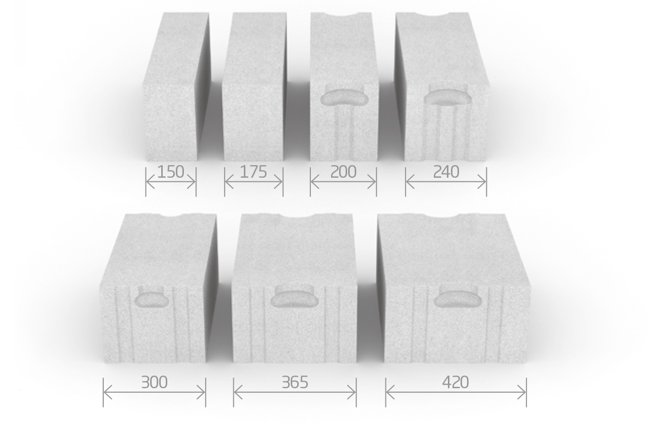 Das Sortiment an SOLBET-Plansteinen ist weit gefächert. Sie sind mit einer Stärke von 150 mm bis 420 mm erhältlich.