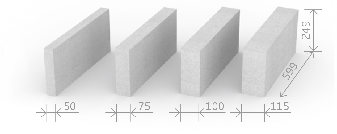 Die Dicke der Platten beträgt von 50 mm bis 115 mm.
